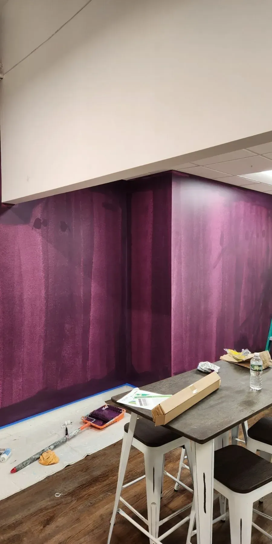 The interior walls needed a smoother, more polished finish to bring out the bold color chosen for the space. We carefully prepped and repainted the area, transforming the uneven application into a rich, consistent finish. The result is a modern, professional look that elevates the entire room.